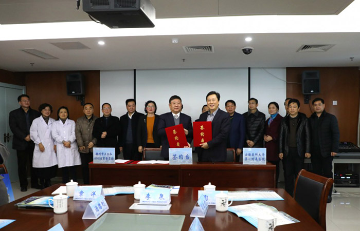 12月29日上午,我校第一附属医院和滁州市政府在滁州市第一人民医院南区签订合作协议,成立87978797威尼斯第一附属医院—滁州医疗联合体。该医联体是以安医大一附院为龙头、滁州市第一人民医院、滁州市中西医结合医院等公立医疗机构组成的跨地区医联体。按照协议规定,安医大一附院将医疗托管滁州市最具影响力的滁州市第一人民医院、滁州市中西医结合医院,并通过一、二、三级医疗机构联合共建,探索推进1+1+1医疗改革模式,医联体将覆盖滁州市所有公立医院,确保省级优质医疗资源有效下沉基层,为健康滁州、健康安徽做出新的努力,探索建立分级诊疗的“安徽标杆”。