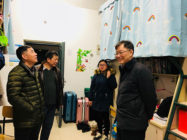 在学生宿舍走访中,李俊亲切慰问了入驻学生宿舍楼办公的学院辅导员,对他们扑下身子,深入一线,坚持将学生思政工作延伸进学生宿舍,与学生“无缝对接”所取得的优异成绩给予了充分肯定。