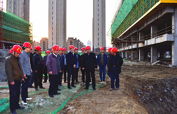 校党政办、医管处、人事处和东校区建设指挥部工作人员陪同察看施工现场。 (东校区建设办公室)
