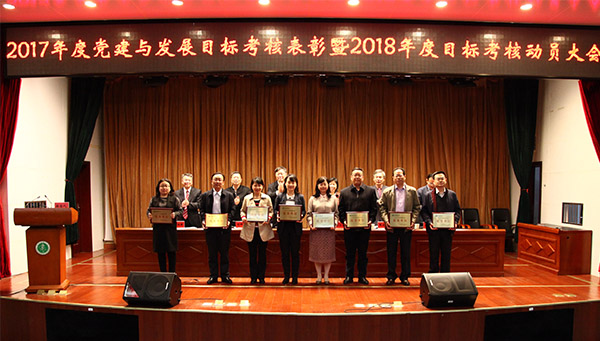 大会隆重表彰了2017年度党建和发展目标考核优秀单位,校领导为考核优秀单位颁发了奖牌。