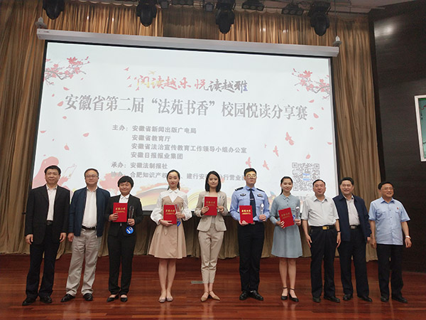 据悉,本届“法苑书香”校园悦读分享赛,由安徽省新闻出版广电局、安徽省教育厅、安徽省法治宣传教育工作领导小组办公室、安徽日报报业集团联合主办,安徽法制报社承办,合肥知识产权法庭、建行安徽省分行营业部协办。活动旨在深入学习习近平新时代中国特色社会主义思想和贯彻党的十九大精神,深化全民阅读新内涵,提升全民阅读品质。在全省青少年尤其是大学生中掀起读书学法热潮,展示新时代大学生读书学法、尊法守法用法的昂扬风貌。(马克思主义学院 单紫旋 宋继清)
