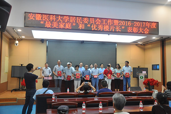 校综治办主任周友泉同志宣读表彰文件,副主任谢敏同志向大会作2016-2017度居民委员会工作报告。活动评选工作组成员和三里庵街道、辖区社居委负责同志应邀出席大会。(综治办)