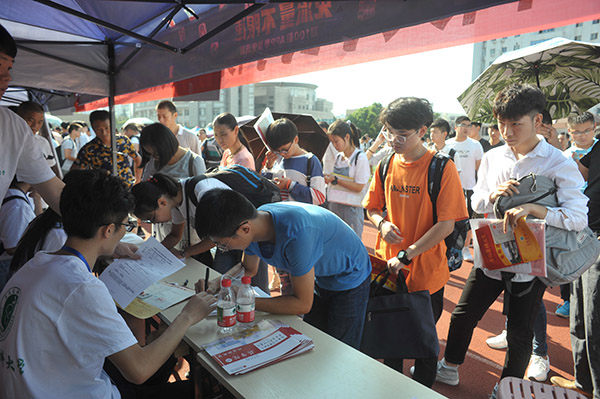 天朗气清,秋风送爽。9月6日、8日至9日三天,我校2018级近3300名本科新生分别在翡翠路校区和梅山路校区报到,他们满怀欣喜与期待,带着自己的梦想与家人的期盼,开启了人生的新篇章。