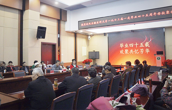 七三届校友们都已年逾古稀,时光催人老去,可是带不走的浓厚的安医情,温暖的同窗谊,大家轮流介绍各自的生活情况,共同回忆校园生活的点点滴滴,还观看了学校宣传片,参观了校史馆。