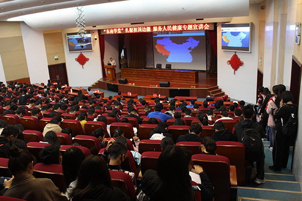 11月2日上午,东南学堂“扎根祖国边疆 服务人民健康”专项宣讲会在我校图书馆第一学术报告厅举行,志愿者们向现场500多名同学揭开了西藏山南的“神秘面纱”。会前,校党委副书记刘群英亲切会见了宣讲团成员。