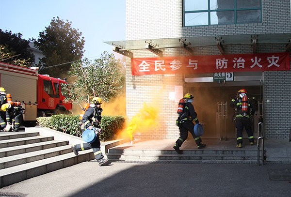 中午12点40分,演练指令准时发出,尚美楼4、5号楼周围浓烟四起,消防警报呼啸而至、响彻楼宇,应急疏散演练活动正式开始。各楼层学生在疏散引导员的指引下紧急撤离,从安全疏散通道鱼贯而出,短短几分钟的时间内,1709名参演学生全部疏散至安全区域。为提升演练教育效果,本次演练增加了应急救援程序。在发现楼内被困学生“呼救”后,消防大队战士全副武装,根据学校消防控制室人员及时、准确的报告,逆行穿过浓烟,冲入“火场”,及时将被困学生解救出来,经过第一时间的紧急救护,“昏迷”的学生转危为安。整个行动过程紧张有序、安全高效,赢得现场观摩师生掌声阵阵。列队清点人数后,消防大队指导员丁一鸣对本次疏散演练活动做了点评,演练活动取得圆满成功。