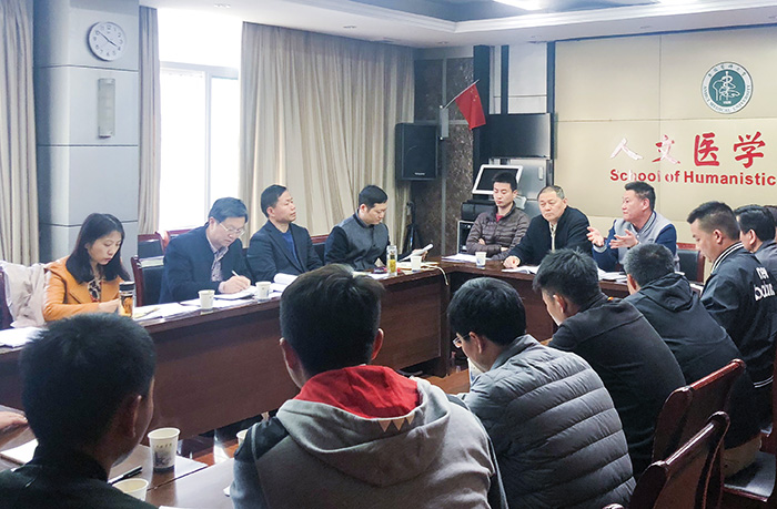 校党政办负责人陪同调研,人文医学学院领导班子全体成员及部分体育教师参与本次座谈会。(人文医学学院 余千春)
