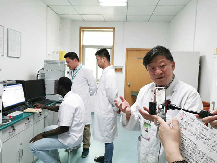在我校志愿者的引导下,光明网主播走进我校校园、图书馆、体育场、第一临床医学院(第一附属医院)、实验教学中心、临床技能中心、临床药理研究所等地体验大学生学习生活环境。学校有关负责人和师生介绍了2019年学校本科生招生情况、资助体系、学生培养、校园生活等情况,直播现场还进行了心肺复苏等急救技能教学展示。