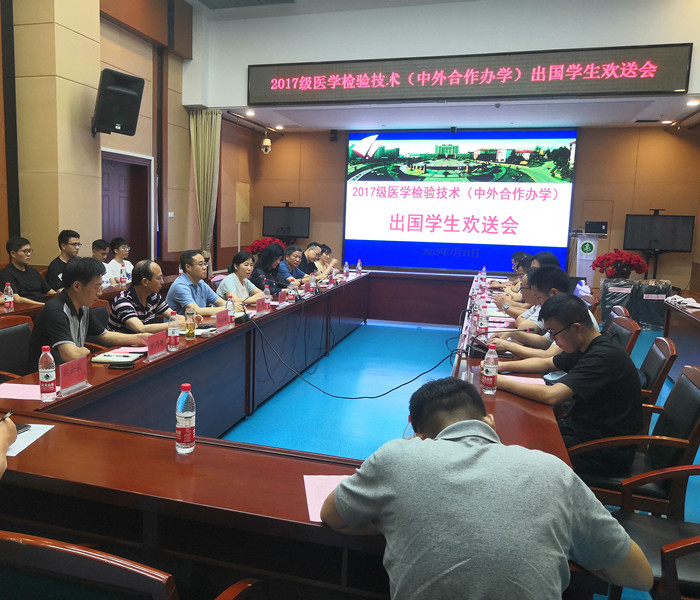 威尚生物技术有限公司和学校有关部门、学院领导、老师、即将出国的同学以及该专业2018级同学代表参加了欢送会。会议由该院学生党总支副书记薛磊主持。(第一临床医学院学生党总支 文/王玉蓉  /张俊杰)