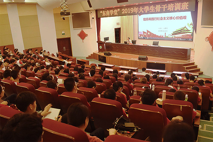 8月28日下午,校党委副书记刘群英应邀为200名“东南学堂”大学生骨干学员作《培育和践行社会主义核心价值观》的专题报告。