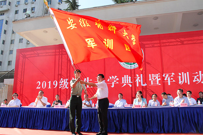 校党委书记顾家山、校长曹云霞、校党委副书记刘群英、校纪委书记常业军、副校长余永强、副校长肖圣龙、副校长吕雄文、第一临床医学院(第一附属医院)院长梁朝朝等出席开学典礼并在主席台前排就坐。开学典礼上,顾家山代表学校向军训团授旗,曹云霞发表讲话,刘群英主持大会,肖圣龙宣布军训团组成人员名单。
