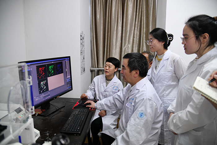 实验过程中的艰辛更是不言而喻。原材料的获取、实验剂量的设置、实验模型的建立、实验指标的选择、研究平台的搭建……团队成员们几乎每天都在面临着不同考验和挑战。一个看似简单的实验,可能要重复十几次甚至几十次,才能获得满意的结果。一个成熟的模型,也可能因为环境的变化而出现变数。寒来暑往,春去冬回,校园里的小路上留下他们步履匆匆的背影,办公室的电脑前有他们深夜伏案的样子。决不放弃,只要有一线希望,就要付出100%的努力,在吕雄文教授的带领下,科研攻关路上的一道道坎、一条条沟都在团队成员的不懈努力及学校相关部门的大力支持下成功破解,几千个日夜的坚持终于结出了累累硕果。