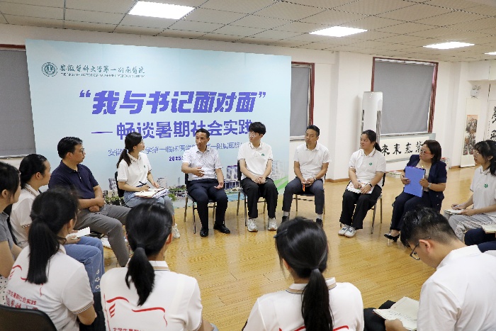 8月1日上午,校党委副书记、第一附属医院党委书记徐朝阳一行赴合肥市瑶海区华业社区慰问第一临床医学院(第一附属医院)“医童成长”暑期社会实践团,并与实践团师生面对面座谈交流,共话实践收获与成长感悟。