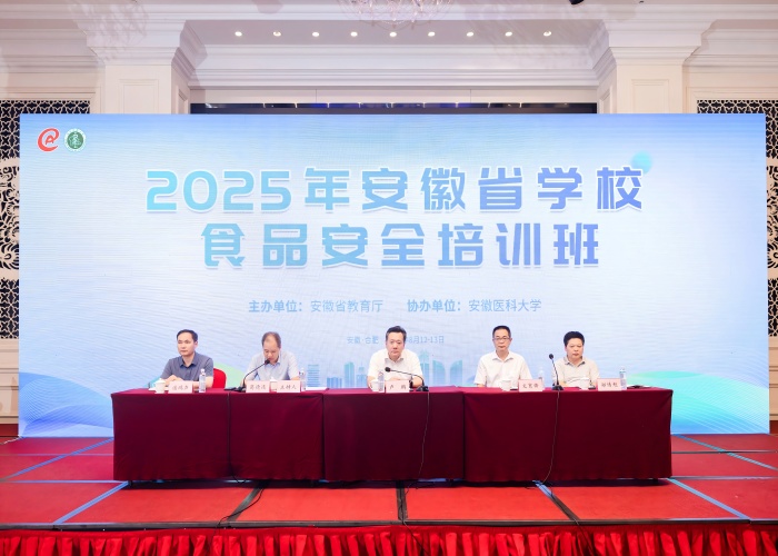 8月12日至14日,安徽省学校食品安全培训班在合肥举办。培训班由省教育厅主办、我校承办,省教育厅副厅长卢鹏出席开班式,校党委常委、副校长文育锋出席开班式并致辞。