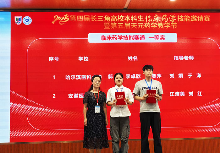 9月20日,第四届长三角高校本科生临床药学技能邀请赛暨第五届天元药学教学节在江苏南京圆满落幕。由药学科学学院2021级临床药学专业本科生林雨榕、   武明月、罗梦雪、常东琳和尹少千组成的我校代表队,在临床药学技能与临床药学服务两个主题赛道分别荣获一等奖和三等奖。